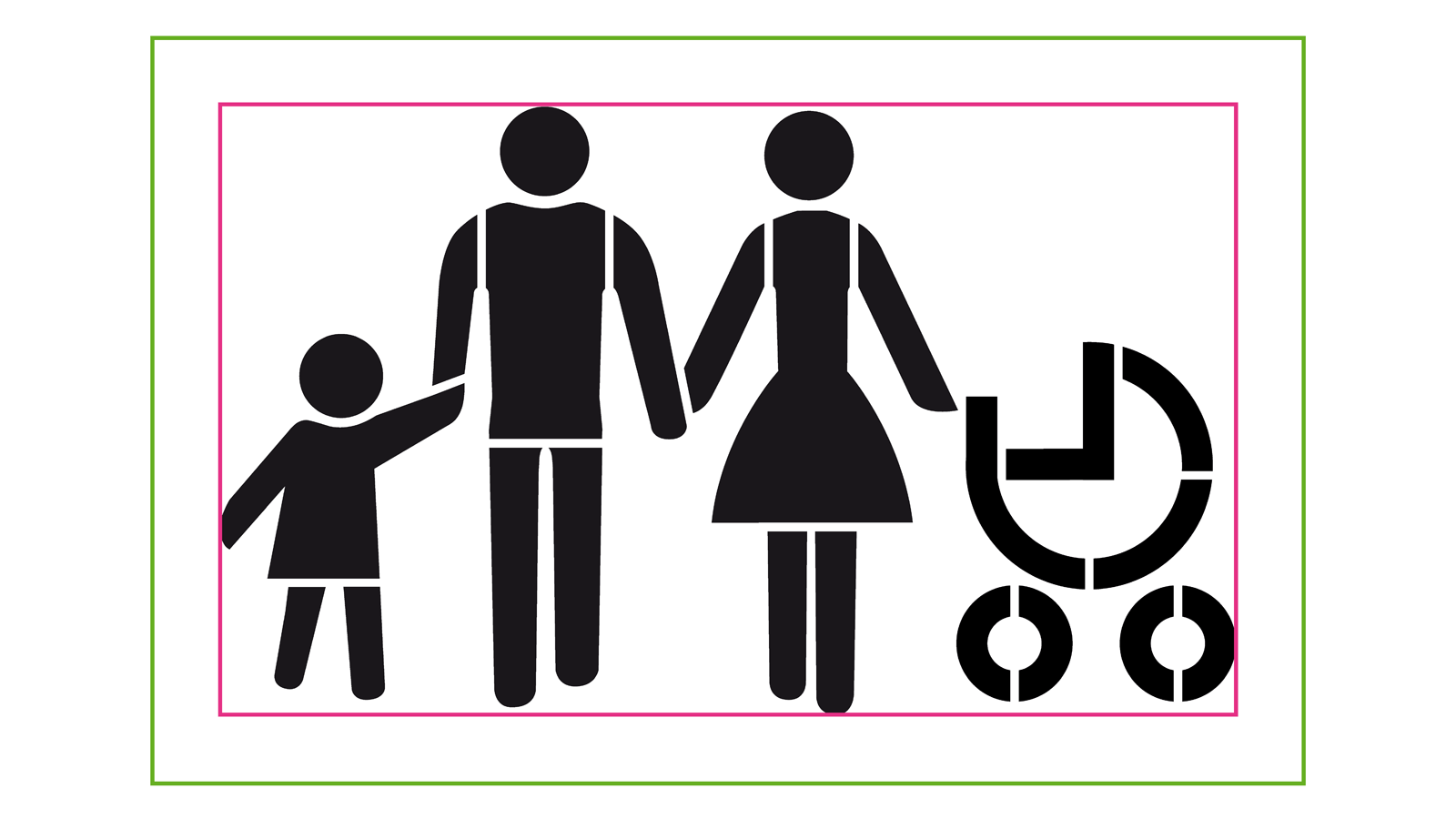 Das Schablonenmaß ist das tatsächliche Maß der gesamten Schablone, also Bild + Rand.